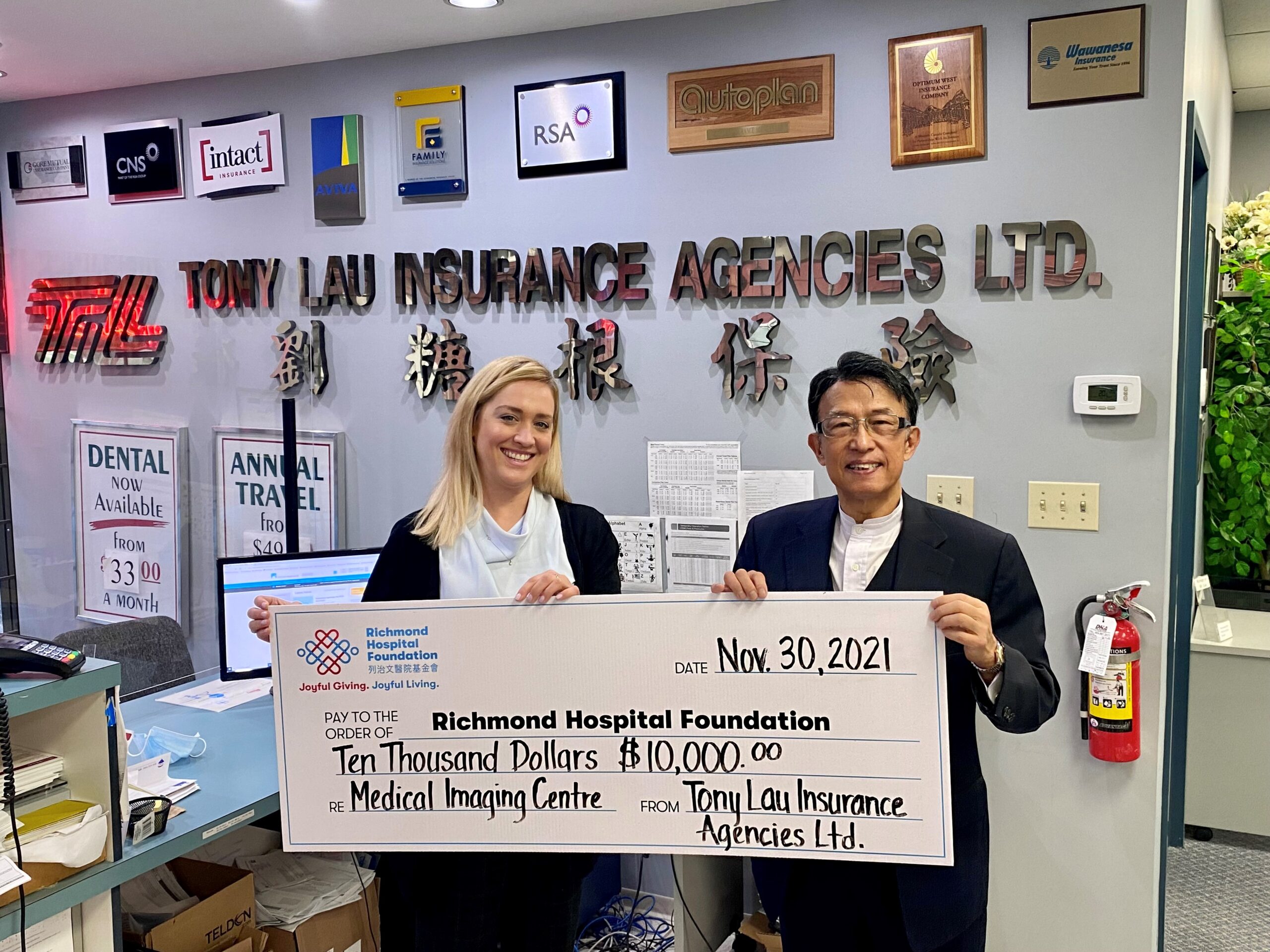 Tony Lau Insurance made a donation of $10,000 to the Richmond Hospital Foundation on November 30, 2021. The Director of Philanthropy of the Foundation...