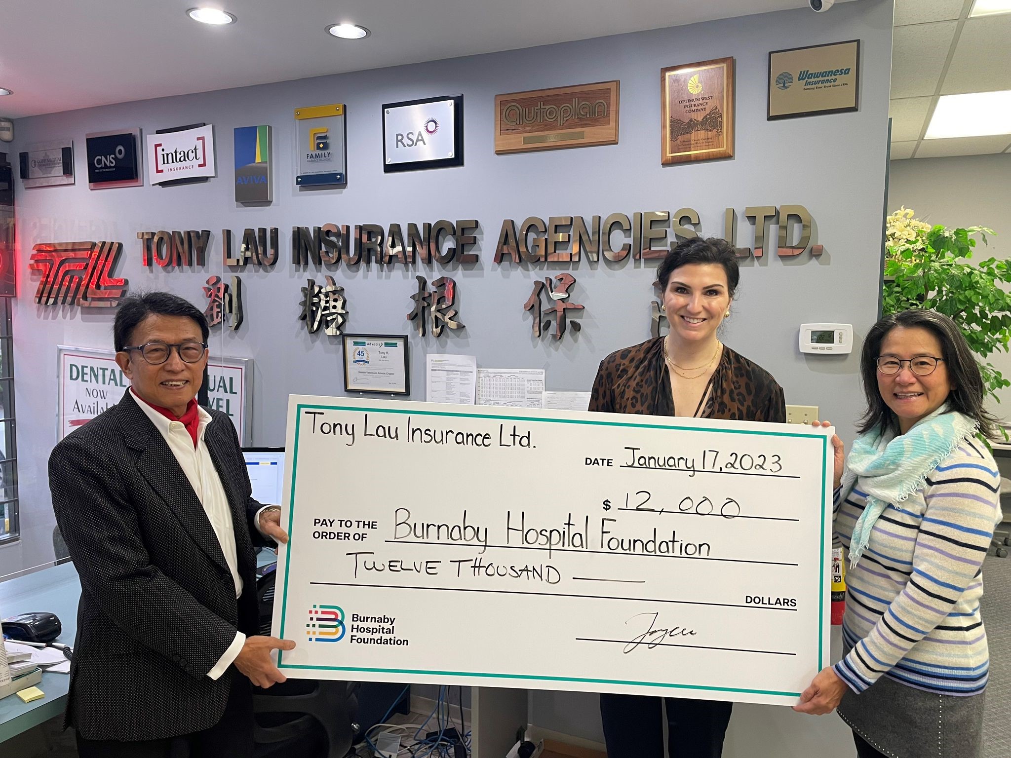 Tony Lau Insurance made a donation of $10,000 to Burnaby Hospital Foundation in 2022. We also fundraised from our friends/clients $2,000. On January 17,...